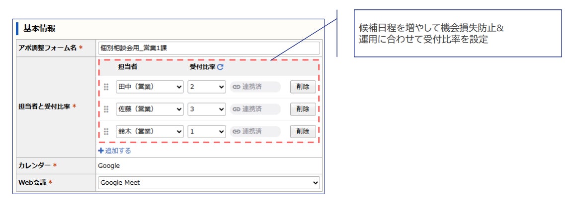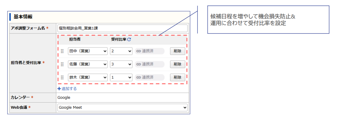 1.柔軟なチーム運用を実現する 複数担当者調整と受付比率設定