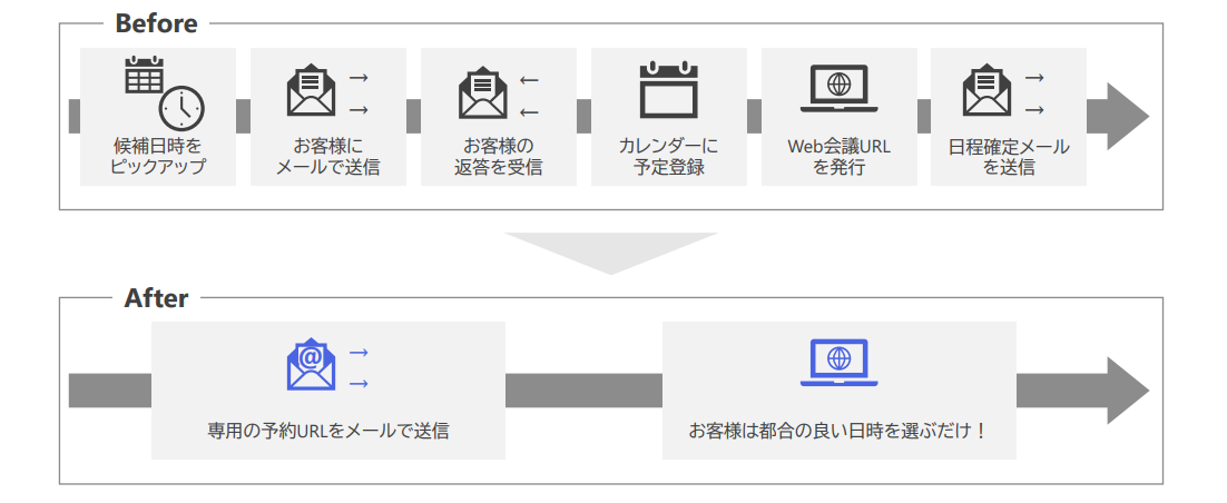これにより、煩雑な日程調整工数を削減し、営業活動の生産性向上を支援します。