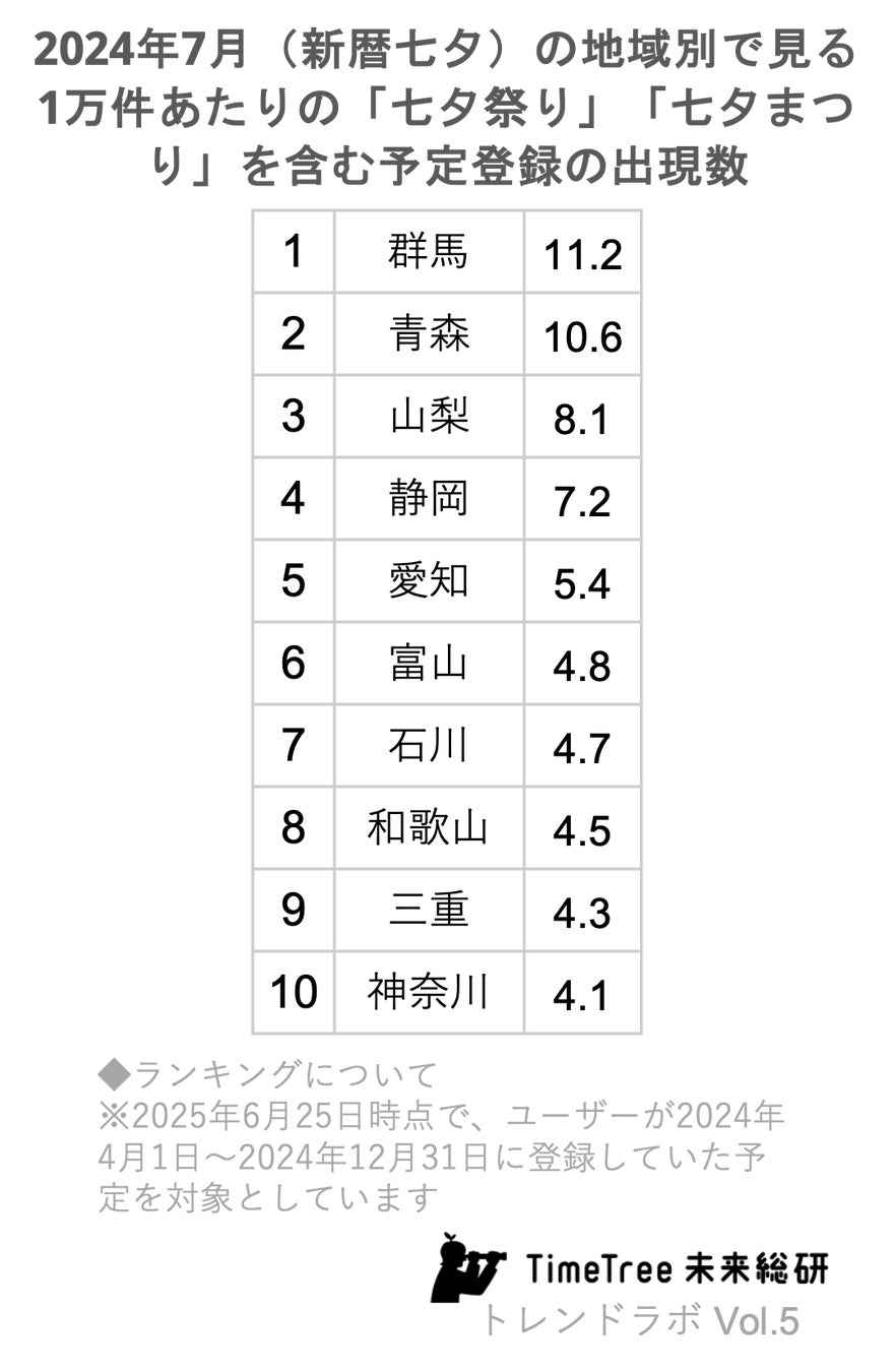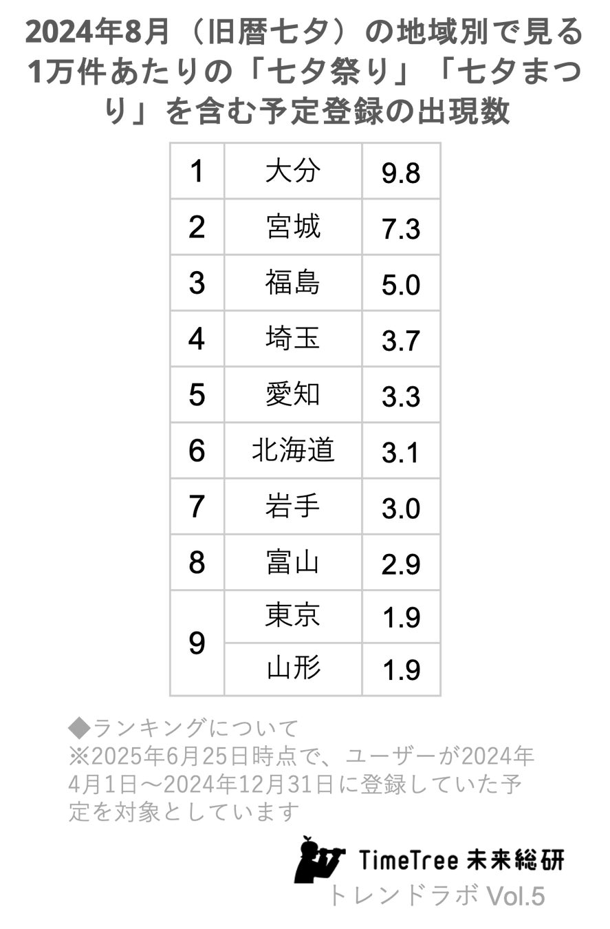 このように、七夕は地域ごとに異なる時期や形で行われており、TimeTreeの予定データからもその多様性が見て取れます。地域の伝統や季節感を大切にしながら、現代のライフスタイルに合わせて進化する七夕の姿が浮かび上がりました。