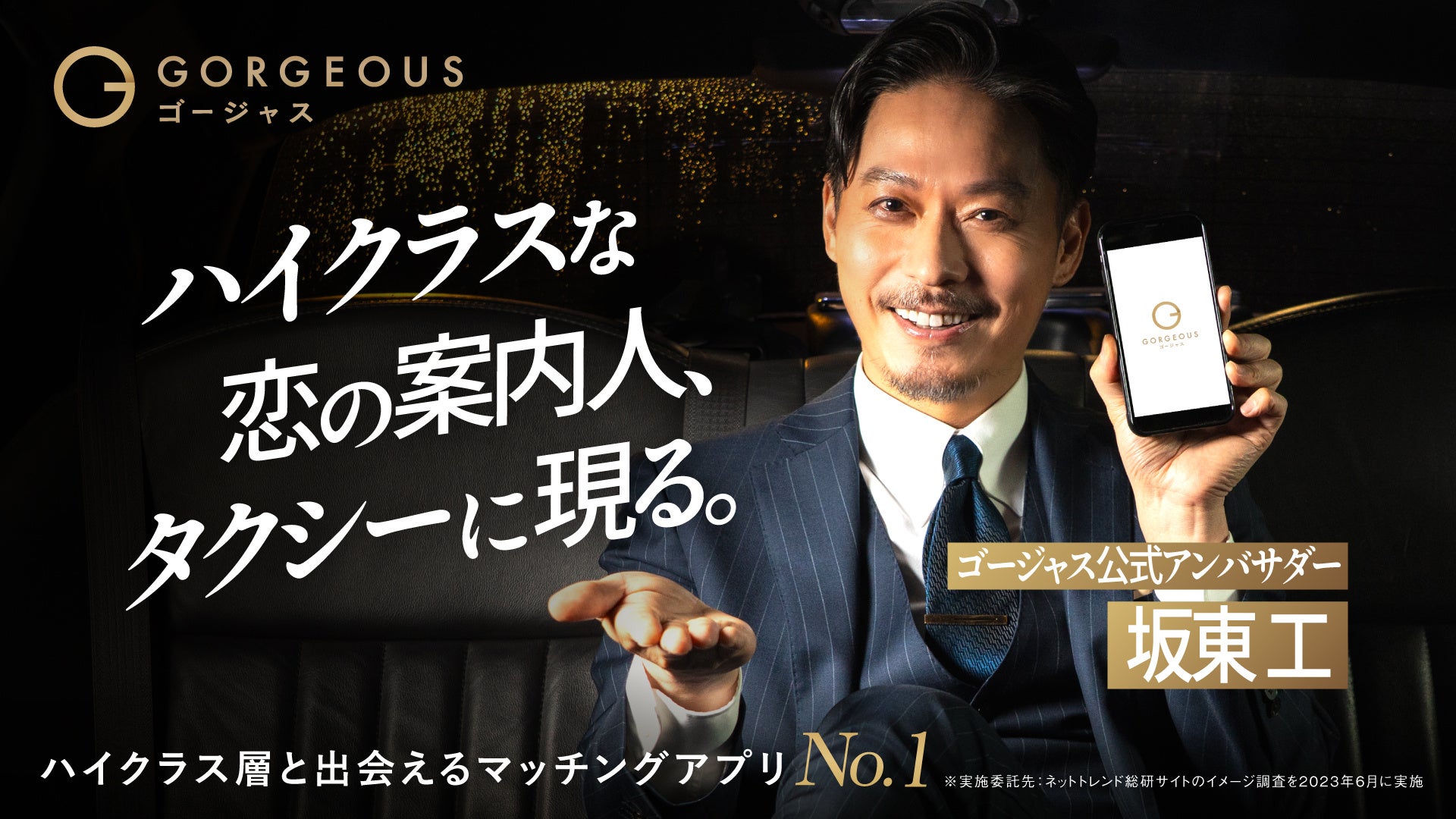ハイクラスな恋の案内人、タクシーに現る。完全審査制マッチングアプリ「ゴージャス」、公式アンバサダーに坂東工氏が就任!4月14日より初のタクシー広告開始&特別優待キャンペーンを実施!
