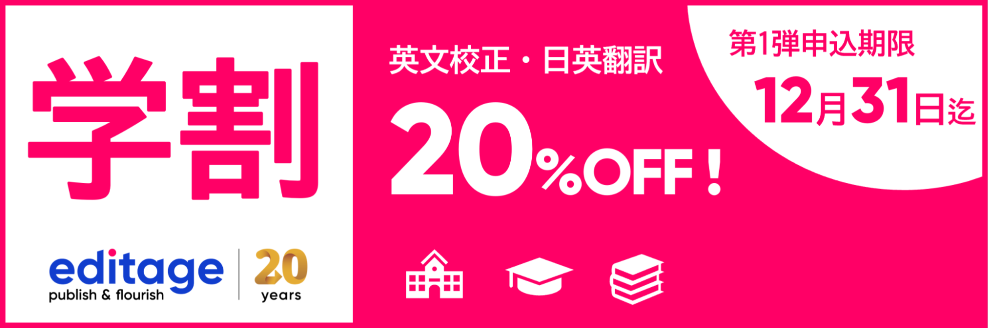 今回キャンペーンにご協力いただくエディテージは、全学術領域を網羅する世界最大規模の英文校正・翻訳チームを有し、高品質な英文校正・論文投稿サポートサービスを提供しています。