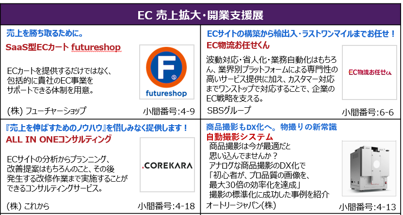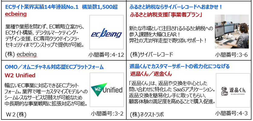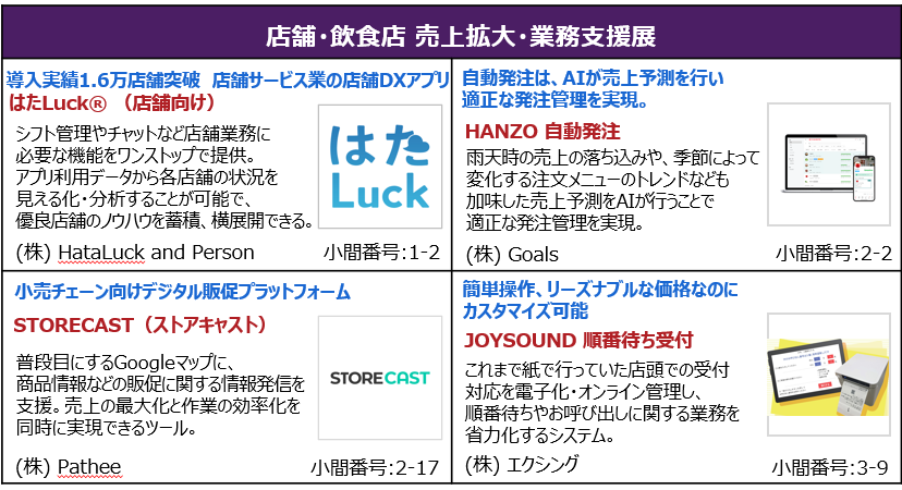 店舗・EC DXPO 大阪’24 出展製品・サービス(一部抜粋)