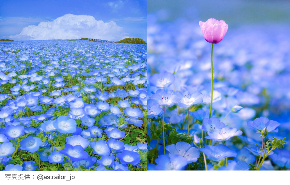 ネモフィラの開花期は、4月下旬ごろまでの予想で、アイスランドポピーは5月初旬ごろまで開花が続く見込みで、その後同じ場所で赤いシャレーポピーも咲きます。