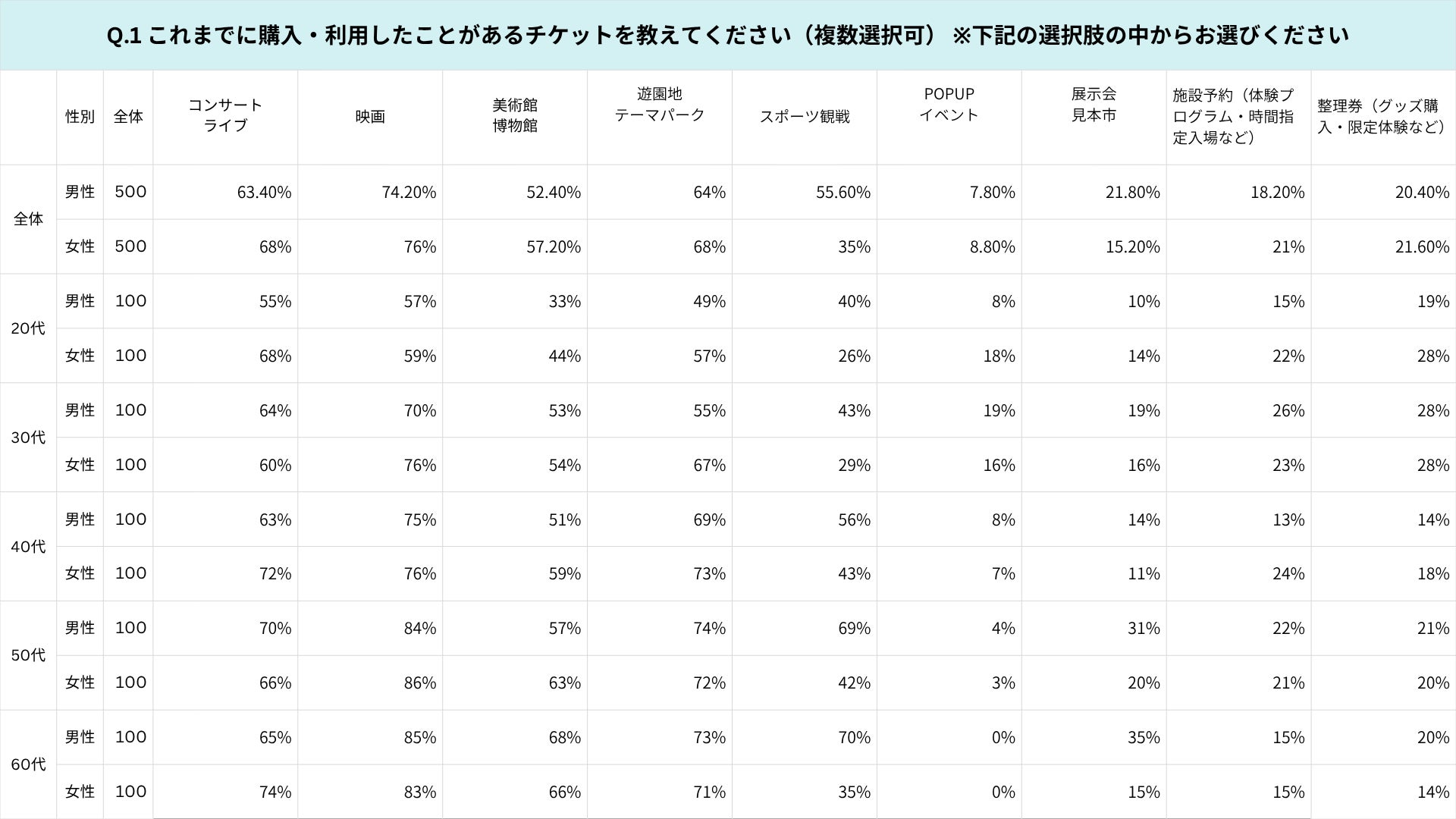 Q1.これまでに購入・利用したことがあるチケットを教えてください(複数選択可)