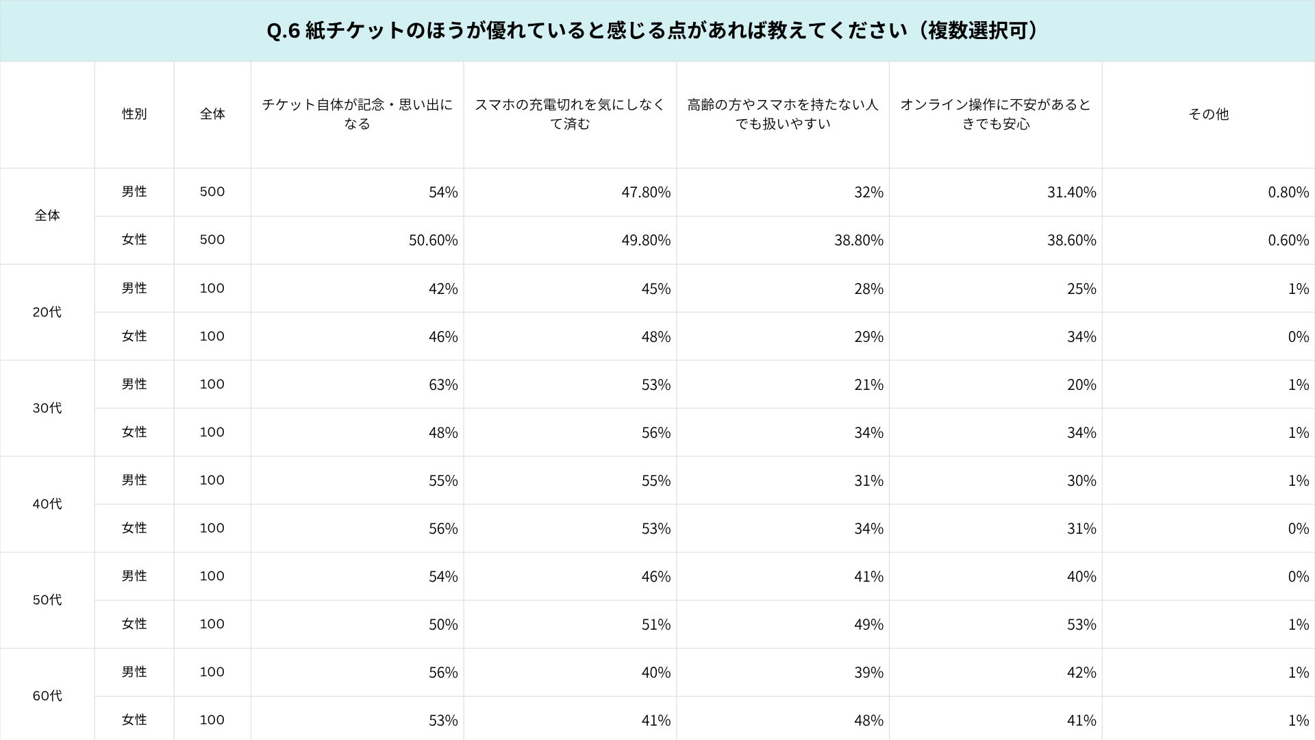 Q6.紙チケットのほうが優れていると感じる点があれば教えてください(複数選択可)