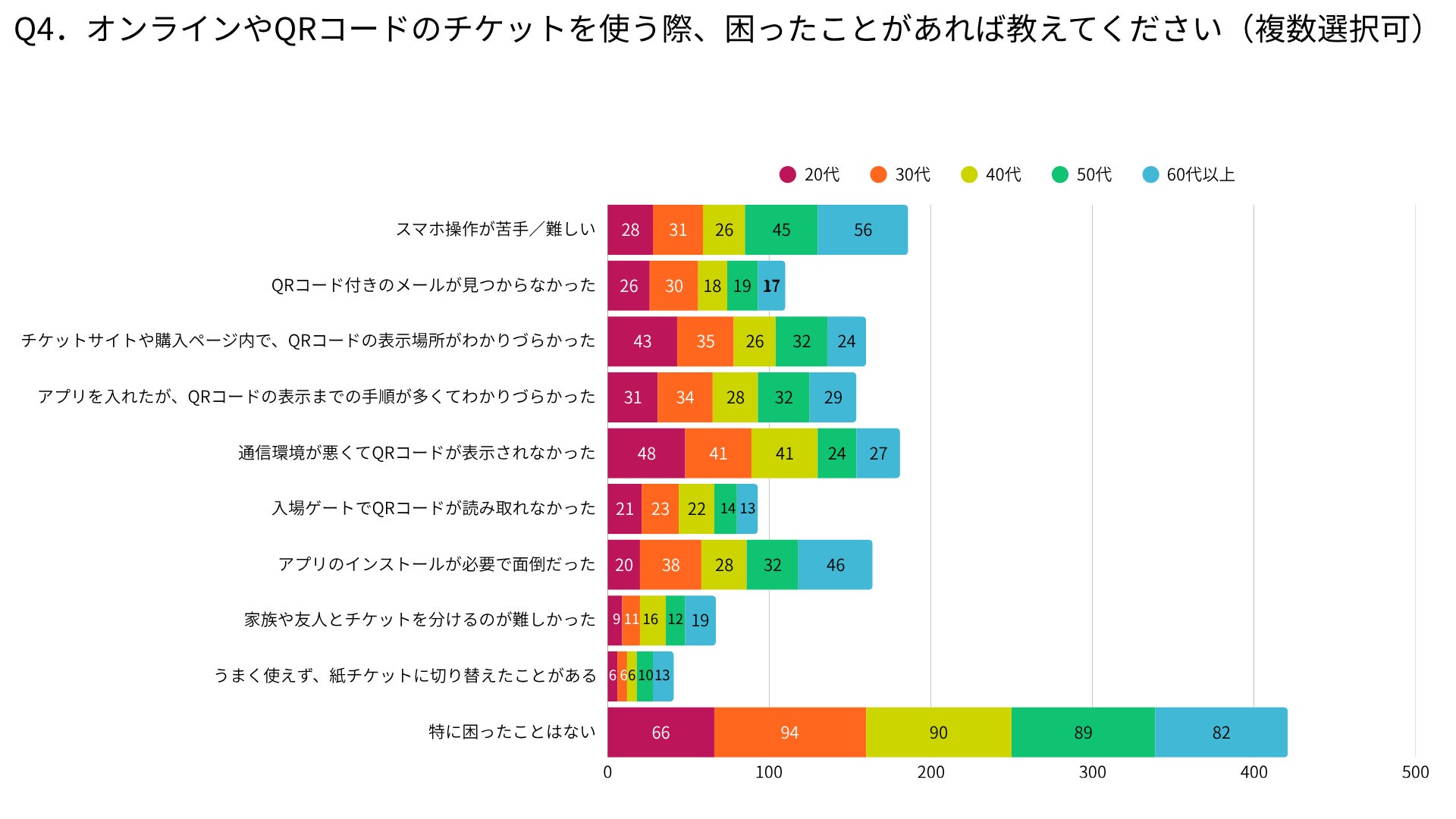Q4.オンラインやQRコードのチケットを使う際、困ったことがあれば教えてください(複数選択可)