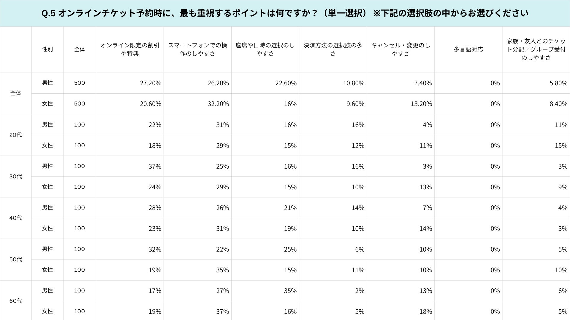 Q5.オンラインチケット予約時に、最も重視するポイントは何ですか?(単一選択)