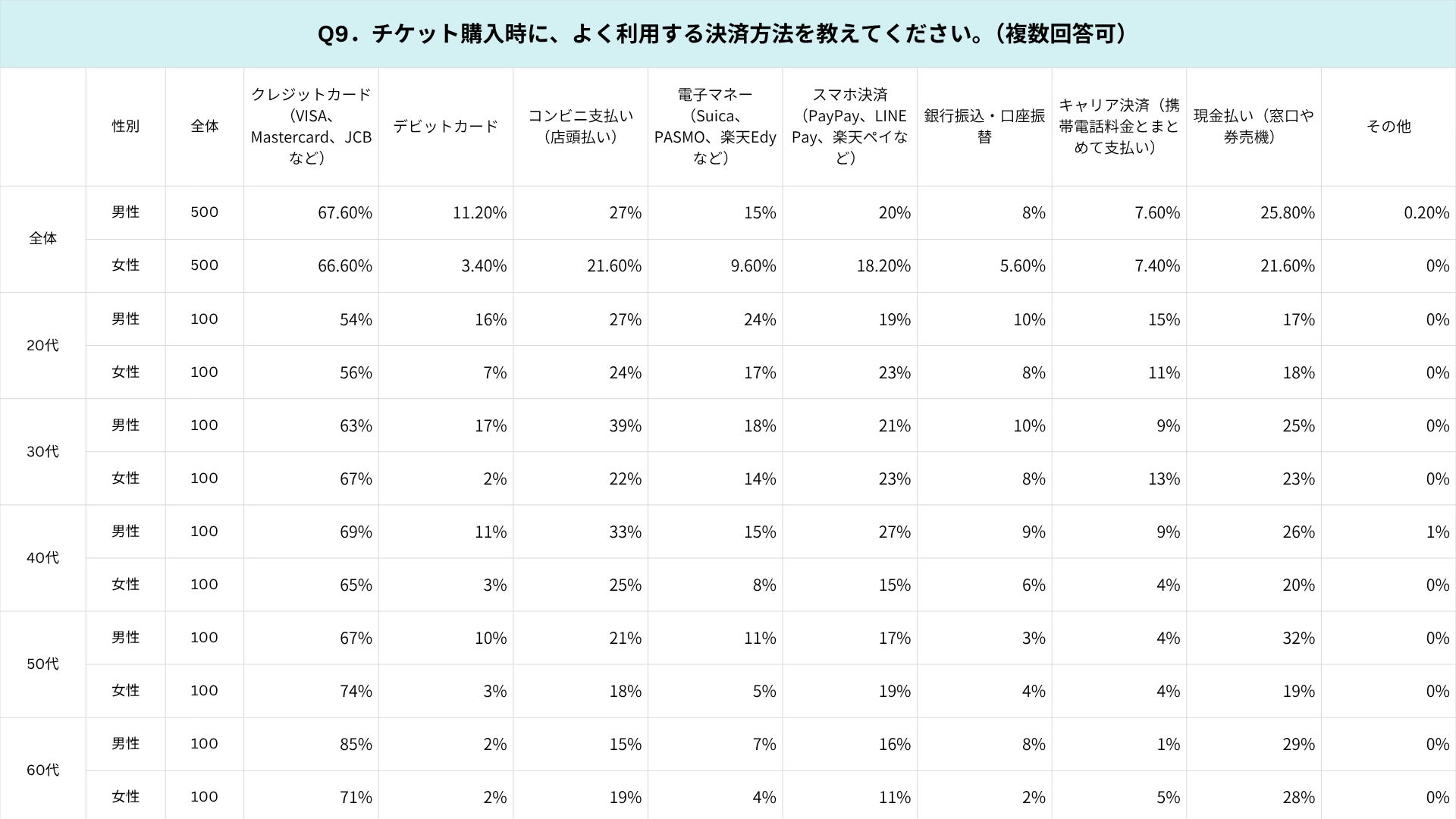 Q9.チケット購入時に、よく利用する決済方法を教えてください。(複数回答可)