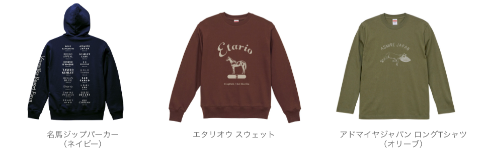 引退馬関連のグッズを販売しています。本ショップの売上の一部はYogiboヴェルサイユリゾートファームの引退馬養生費に当てられます。【オンラインストア:https://versailles.theshop.jp/】