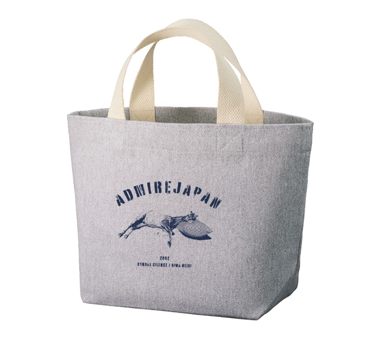 アドマイヤジャパンがYogiboに身を委ねた様子がプリントされたミニトートバッグ。普段使いの小物入れとして最適です。