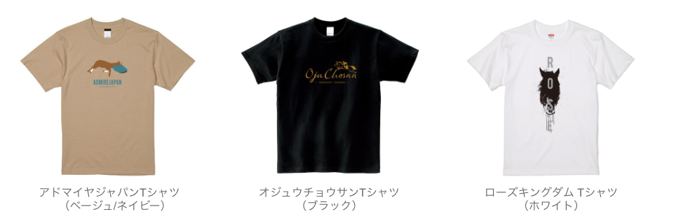 アドマイヤジャパンがYogiboに身を委ねた様子がプリントされたTシャツ。