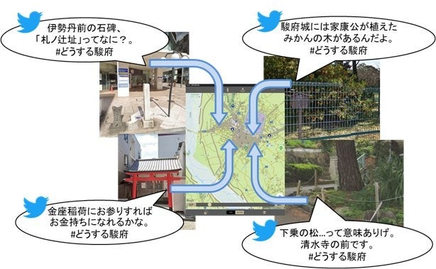 Twitterの「大江戸今昔めぐり」公式アカウント(@ooedokonjak)をフォローの上、ハッシュタグ「#どうする駿府」を入れて、下記の要領でツィートしてください。