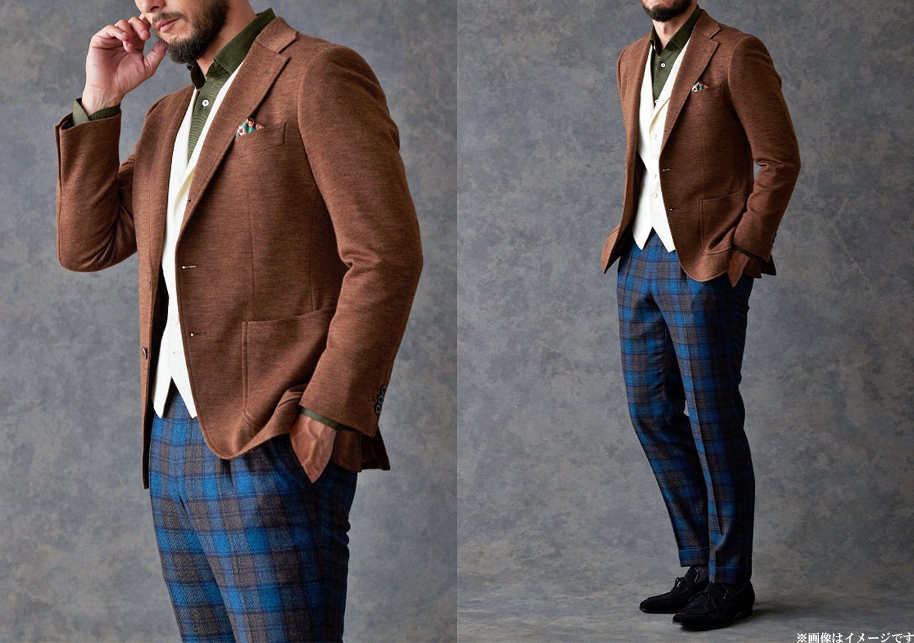 リネンやニット素材の生地は、大人の上品さと色気を兼ね備えたジャケパンコーデとしてエグゼクティブ層から高い人気があります。