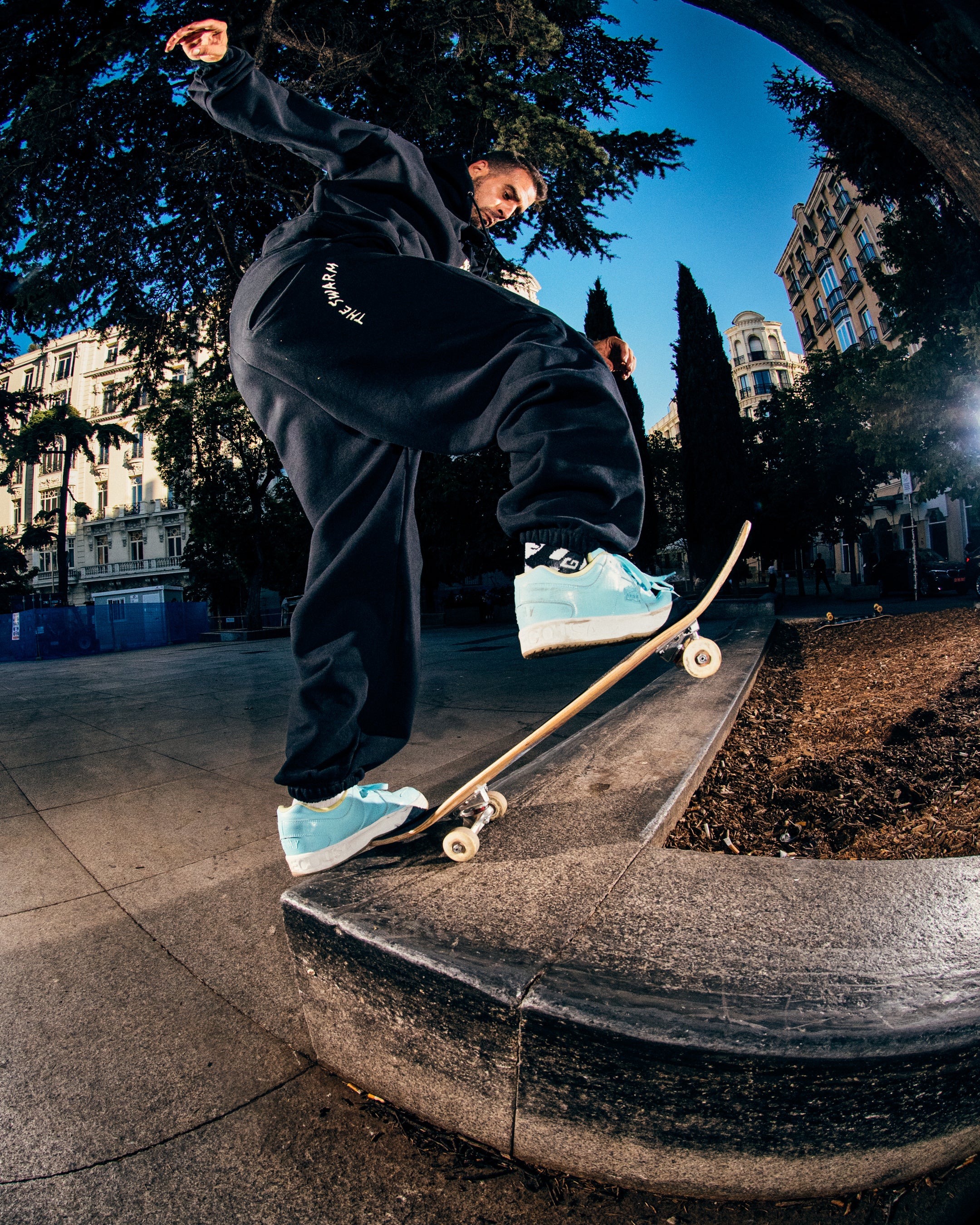 90’sスケートカルチャーのエナジーを現代に呼び起こし、都市を蜂の群れのように駆け抜けるスケーターたちの姿をビジョンとして描いたプロダクト群は、両ブランドのスピリットが交差する瞬間を体現する。