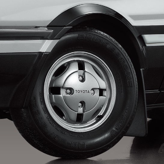 GTアペックスの標準装備である185/70HR13のスチールラジアルタイヤと、5J×13アルミホイールを装着。発売時のノーマル仕様にとことんこだわったセッティングを採用しています。