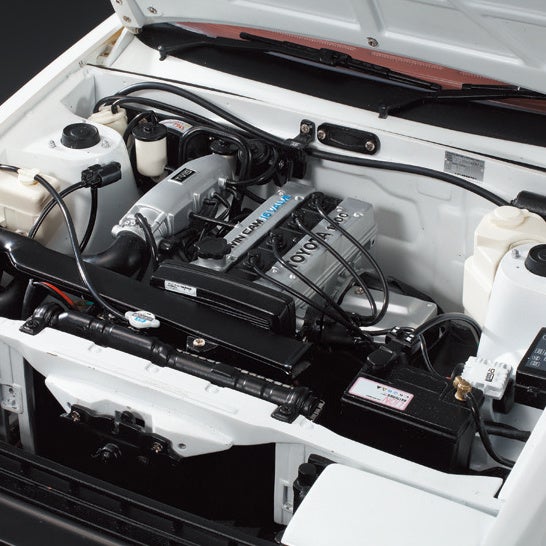 ボンネットを開ければ、名機4A-GEU型エンジンが存在感を放つ、精密なパーツ設計によるエンジンブロック、エキマニやラジエターなどメカニック気分も楽しみながらハチロクを堪能できます。