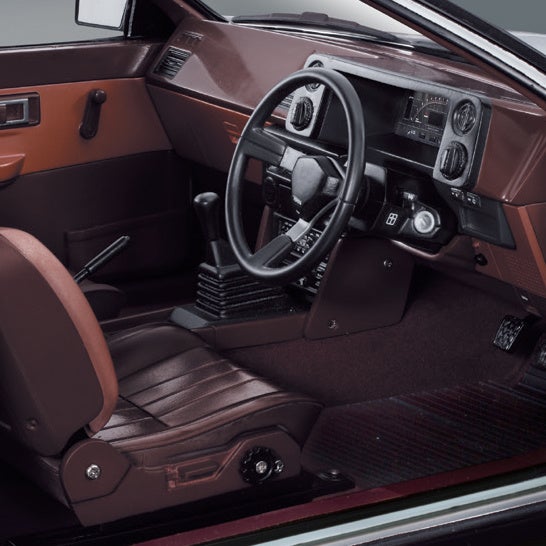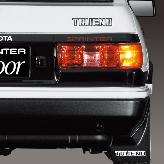 トレノAE86型ならではのリトラクタブルヘッドランプはポップアップと格納が可能。ウインカーやリアコンビネーションランプ、前期型だけのデジタルディスプレイメーター等、実車の仕様と構造にこだわった緻密な設計になっています。
