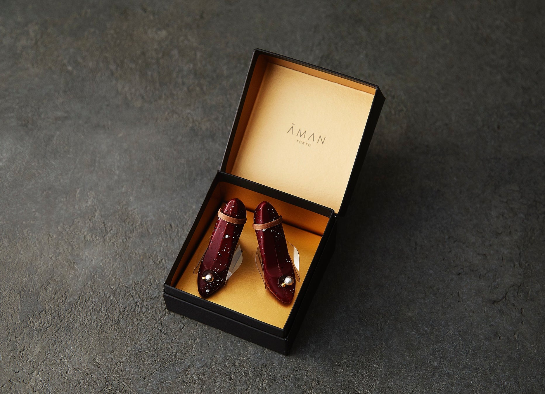アマン東京の今年のホワイトデーチョコレートは、女性にぴったりなハイヒールの形のチョコレートです。華やかなシャンパーニュのガナッシュと、甘酸っぱいラズベリーのガナッシュ、ラズベリージャムを合わせ、エレガントな女性をイメージし、ボルドーレッドの上品な色合いのハイヒールのデザインに仕上げました。繊細なデコレーションがロマンチックなアマン東京のホワイトデーチョコレートを、大切な方にお贈りしてはいかがでしょうか。