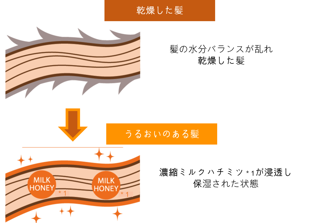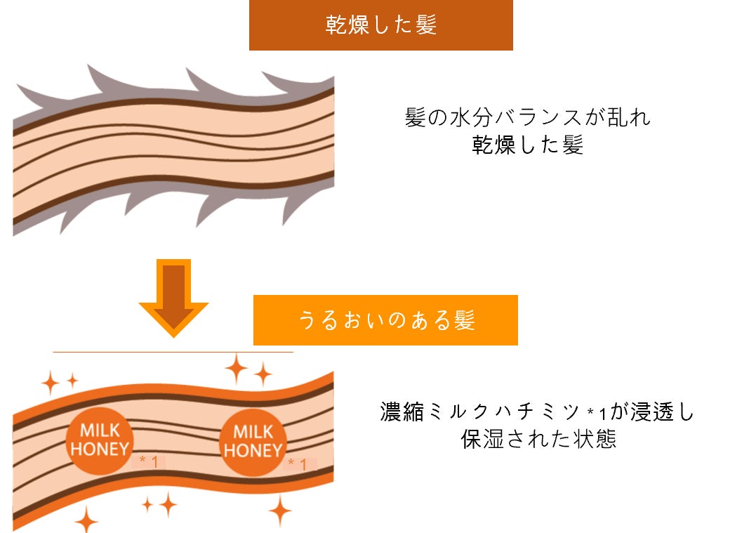 「ミルクハチミツ*1」「ケラチンハチミツ*2」を新たに開発し、シリーズ最高峰※1のしっとり感とダメージケアを叶えます。