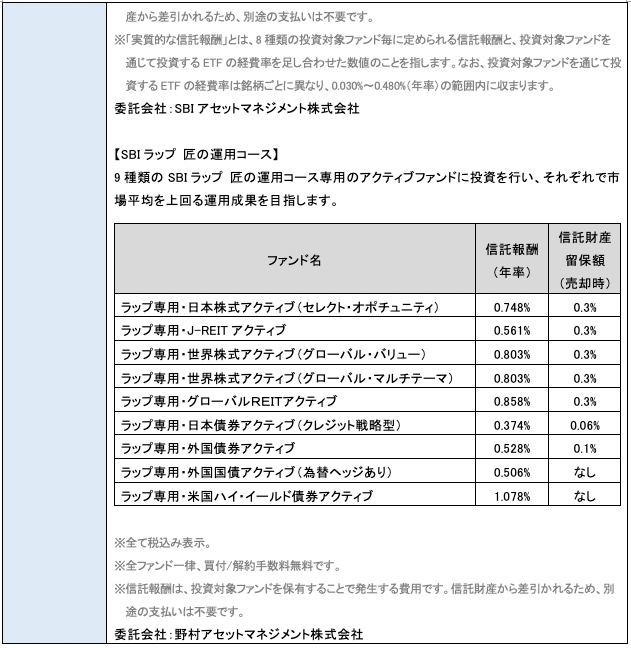 ■「SBIラップ」第2弾 「SBIラップ 匠の運用コース」の主な特徴