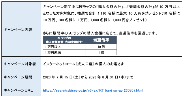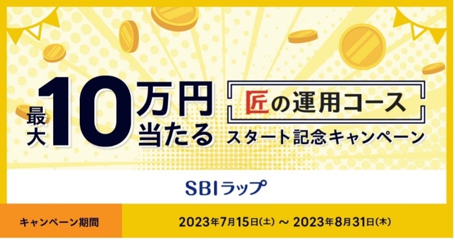 お客さまの匠ラップ購入を応援するため、【7月15日申込受付開始!】「SBIラップ 匠の運用コース」スタート記念キャンペーンを実施します。