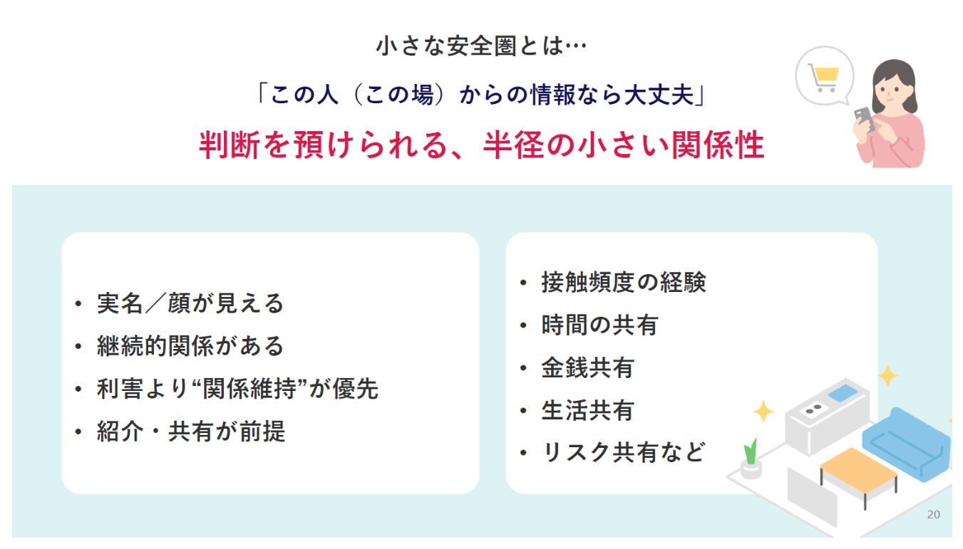 外部リスクから身を守ろうとする女性たちは、半径の小さい信頼できる関係性、すなわち「小さな安全圏」での暮らしを求めています。