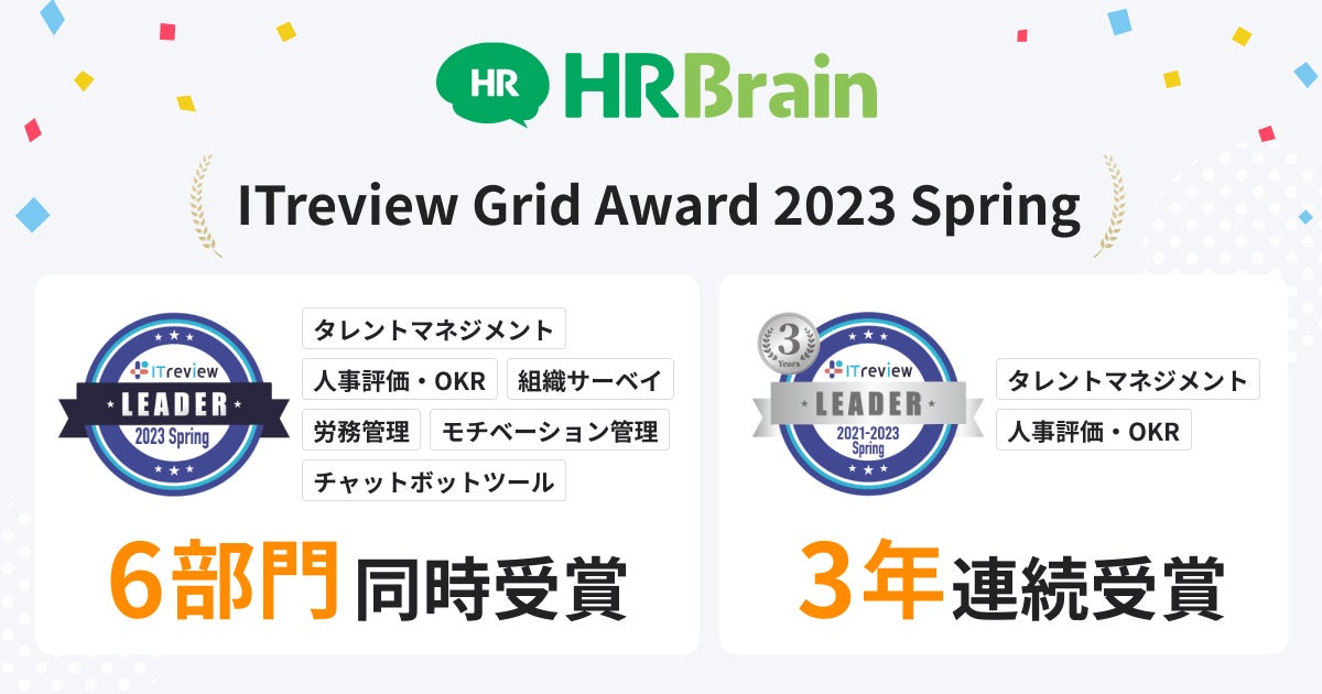 「HRBrain」が「ITreview Grid Award 2023 Spring」6部門にて最高位「Leader」を受賞