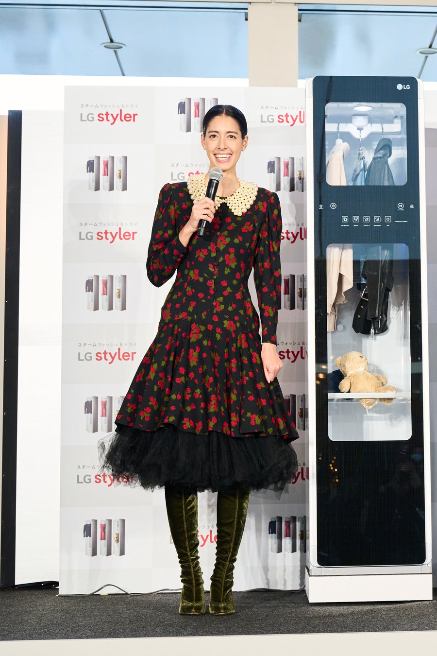 森さんは、「おすすめしたい人」について、「家族、星(妹でモデルの森星さん)!洋服がすごい好きで、ヴィンテージとかもいっぱい持っているので、是非クリスマスプレゼントに買いたいな!」と語ると、「大きめの靴下を用意しないと入りませんよコレ!」と吉村さんがツッコミ。来場した報道陣に対しても、「よくよくみたら、(LG stylerを)買った方がいい人ばかりじゃないですか!世代的に!」とコメントし、報道陣の笑いを誘いました。