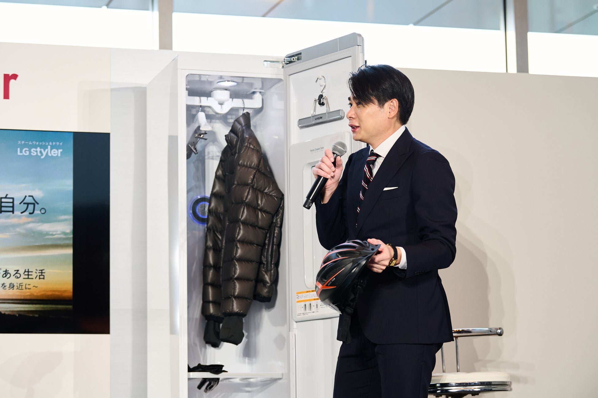 「すごいなって思ったのが、今日何を着ようかなと思った時に、これを着たいなってなったら、とりあえずそれを(LG stylerに)入れるんです!(リフレッシュした服を)着ると、朝からすごい気持ちがいいんです。」とコメント。