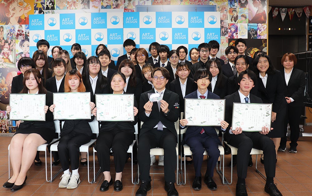 国際アート&デザイン大学校校舎にて開催した表彰式で、参加学生全員に完成品を贈りました。