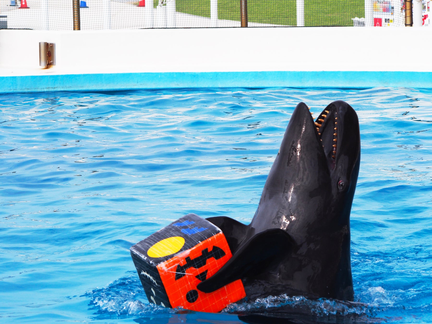 「Autumn Show」では、秋の季節に合わせ、ハロウィンをテーマにした特別演出のイルカショーを開催いたします。飼育50年を迎えた「オキちゃん」をはじめ、イルカたちが多彩なパフォーマンスを披露します。飼育員手作りの「ハロウィン仕様の道具」を使った演技も見どころのひとつです。