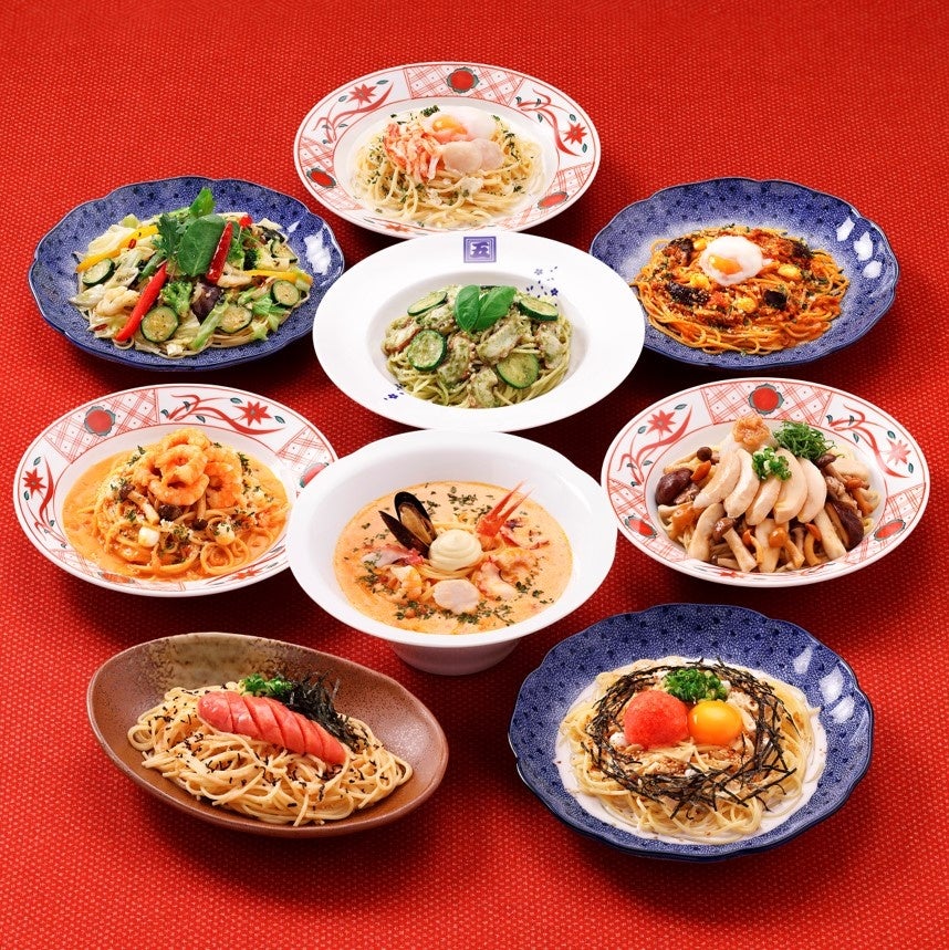 スパゲッティー、オリーブオイル、パルミジャーノ、トマトなど要となる食材は、本場イタリアより直輸入。独自で窯元に制作依頼した有田焼のお皿に盛り付け、お箸で召し上がって頂く日本生まれの日本のスパゲッティー。