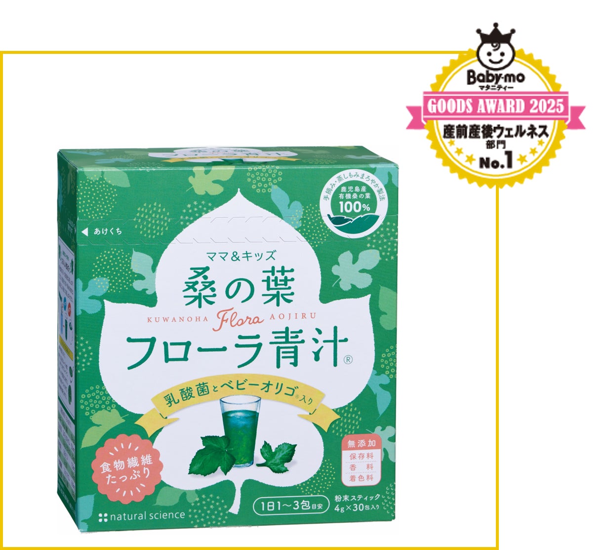 厳正な基準をクリアした有機JAS品質の鹿児島産桑の葉を使用した青汁。ベビーオリゴ®、水溶性食物繊維、100億個の植物性乳酸菌が一緒にとれて、くせがなくまろやかで飲みやすい、水にサッと溶ける細粒タイプです。ほんのり甘く、ノンカフェインで、赤ちゃんから年配の方まで毎日おいしくお飲みいただけます。