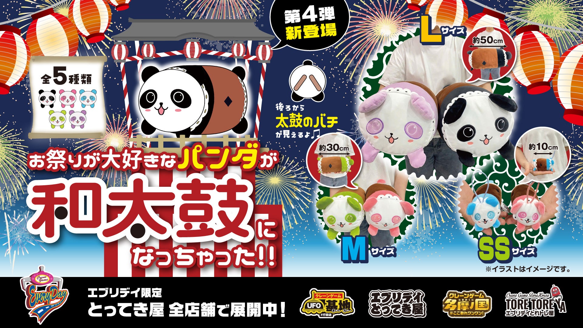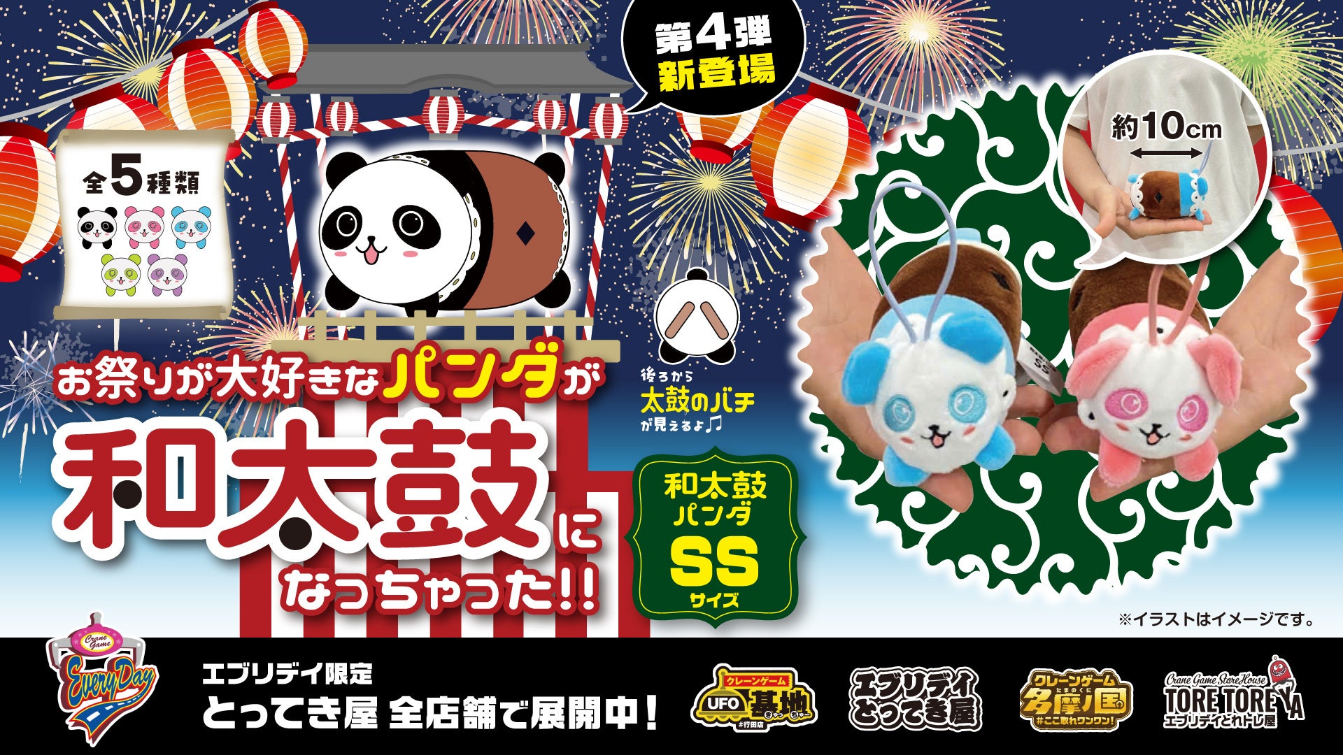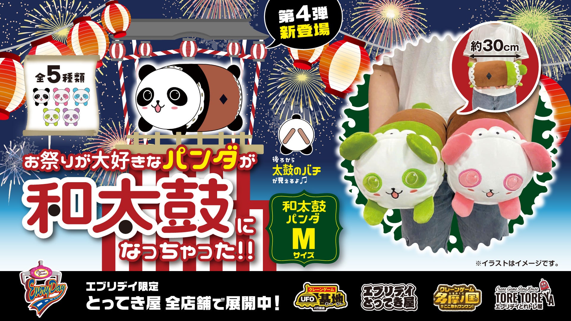 「笑顔創造」が企業理念の株式会社東洋(代表取締役:中村秀夫/本社:埼玉県北本市以下、当社)は、運営するクレーンゲームのテーマパーク【エブリデイ】のオリジナルグッズ第4弾「和太鼓パンダぬいぐるみ&マスコット」が7月2日(水)からエブリデイ全店舗にて展開がスタートいたします。