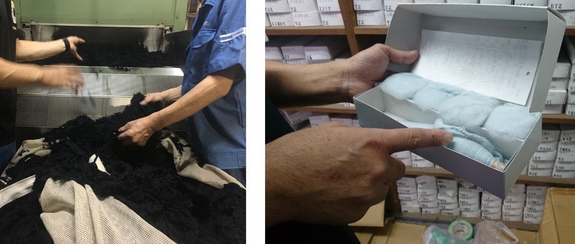 東洋紡績では職人が厳選された素材の水分量や油分を身体で覚え、