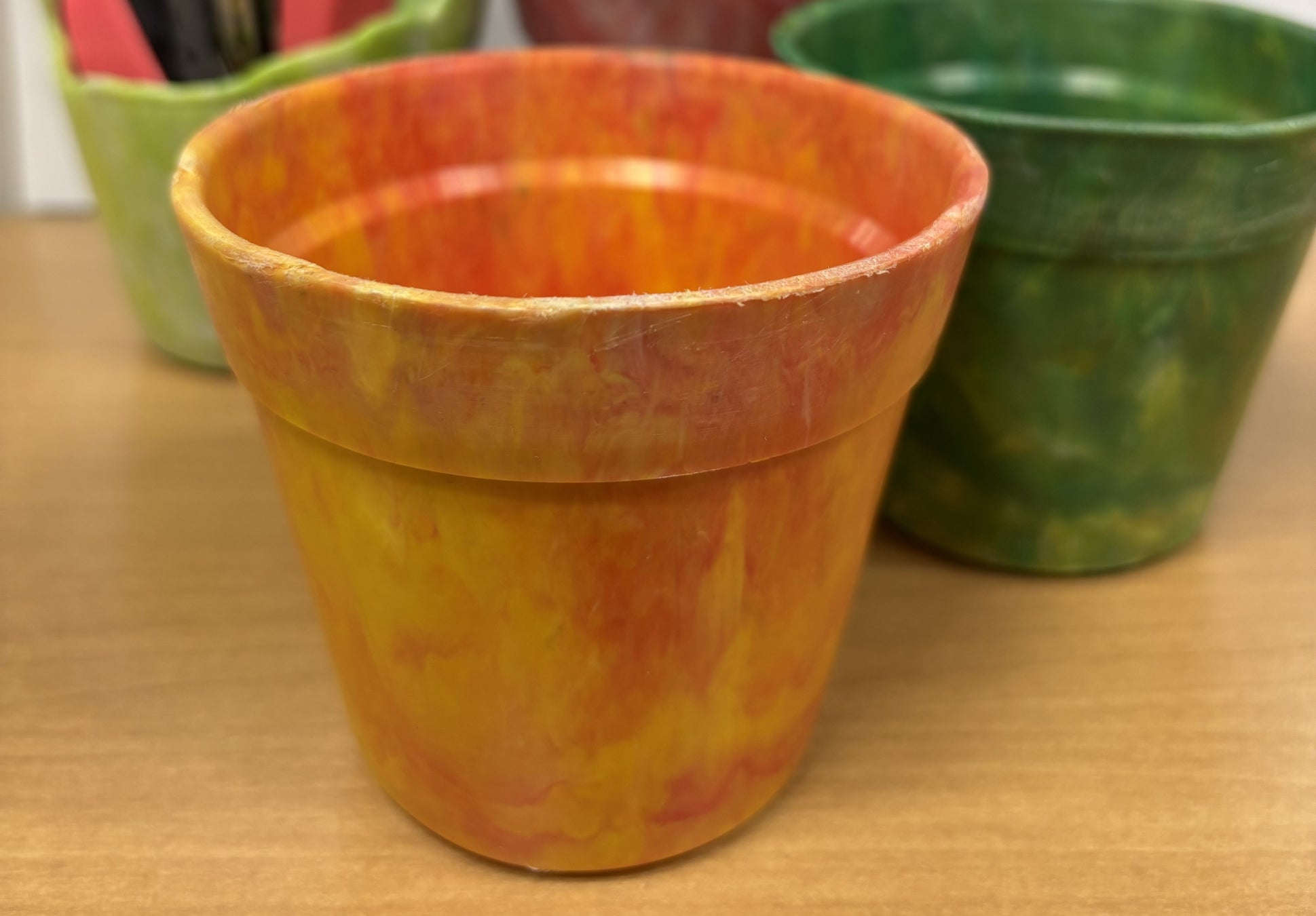 当製品は、100%ペットボトルキャップからできたフラワーポットです。特徴は、ペットボトルキャップを溶かし固める製法によって表れるマーブル柄。世界に一つだけの特別なフラワーポットです。