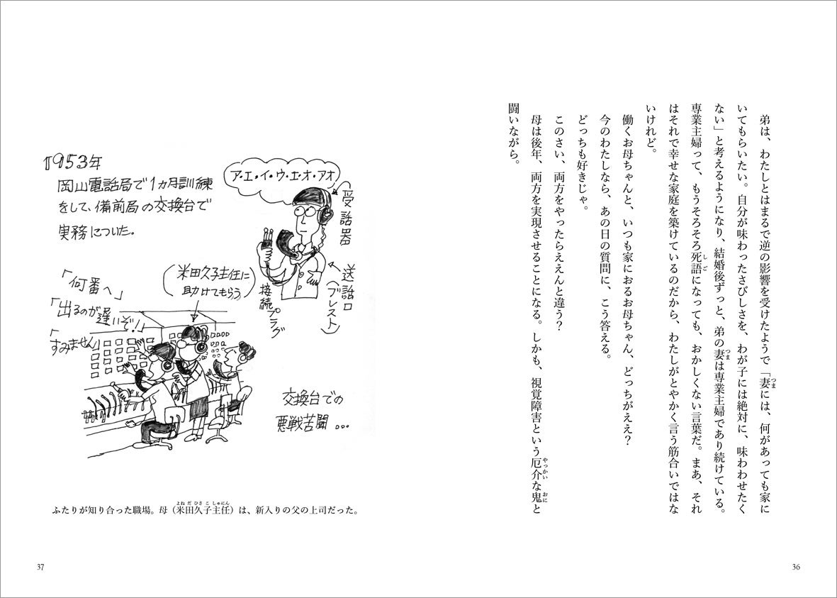 また、絵本『うちのおかあちゃん』では、ある日全く目が見えなくなったときのようすとともに、意地も悪いが、ガッツがあって優しいお母さんのその豪胆っぷりが、ダイナミックなイラストで描かれています。合わせてぜひお読みください。