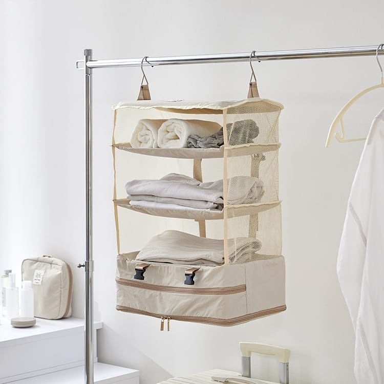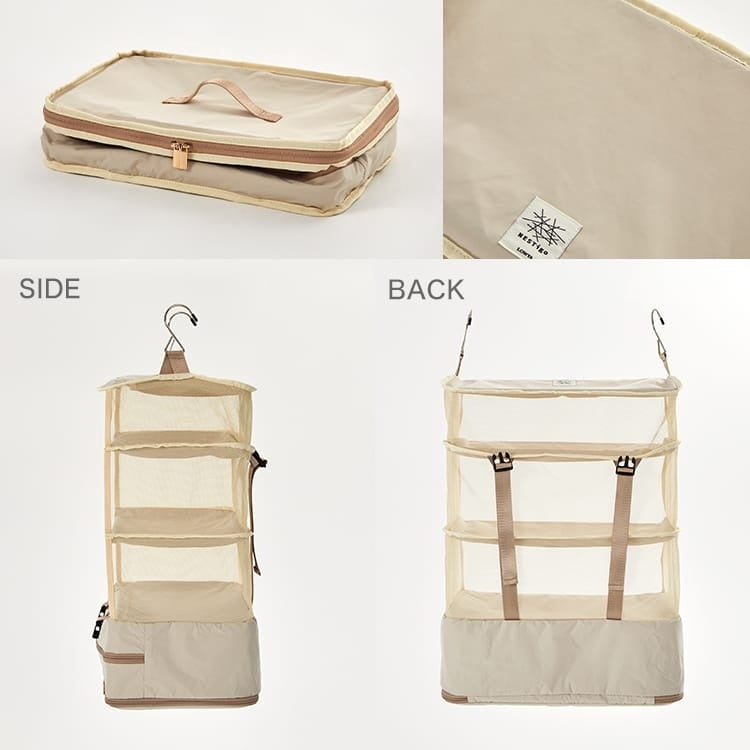 旅先でも日常でも使いやすい本商品は、ワイヤー入りなので服をたくさん入れてもたわまないだけでなく、オープンスペースを3段、そして小物入れに使えるメッシュポケットも完備!周囲がメッシュ素材なので通気性も抜群です。