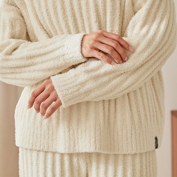 しっかり肉厚であたたかい「もこもこ」に包まれる本ウェアは、優しい色合いのニュアンスカラーで、大人な可愛いを引き立てるお色味、アイボリーを採用。「リブの立体感」が、おしゃれ可愛いをつくりだします。