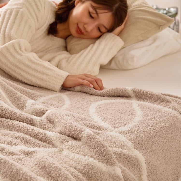 ふんわり厚手の贅沢感溢れる本ブランケットは、肌に触れた瞬間、心ゆるむやさしさがたまらない一品。