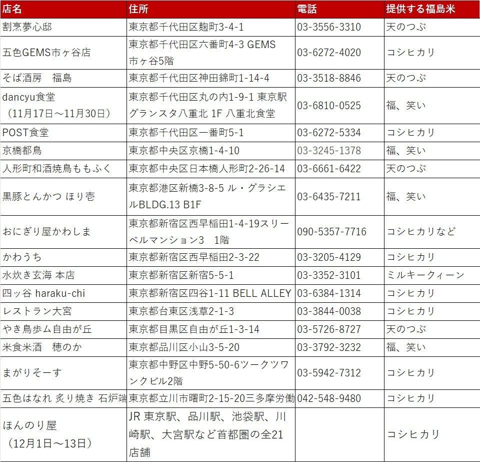 ふくしまの米が味わえるキャンペーン飲食店一覧