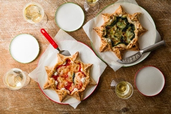 ピッツァの名店「ナポリスタカ」のオーナーであるペッペ氏が監修した、カルツォーネ(包み焼きピザ)とマルゲリータが1枚で楽しめるように考案されたピザです。8つのミミがある特徴的な形をしており、ミミの部分にはクリーミーなリコッタチーズを包みカルツォーネのように仕立て、最後までチーズを存分に楽しめる一品に。マルゲリータピッツァは、イタリア産のトマトを使ったトマトソースの上から、イタリア産モッツァレラチーズをトッピングしています。ジェノベーゼピッツァは、バジルソースにイタリア産モッツァレラとハードチーズをトッピング。11月末まで成城石井で先行して発売いたします。