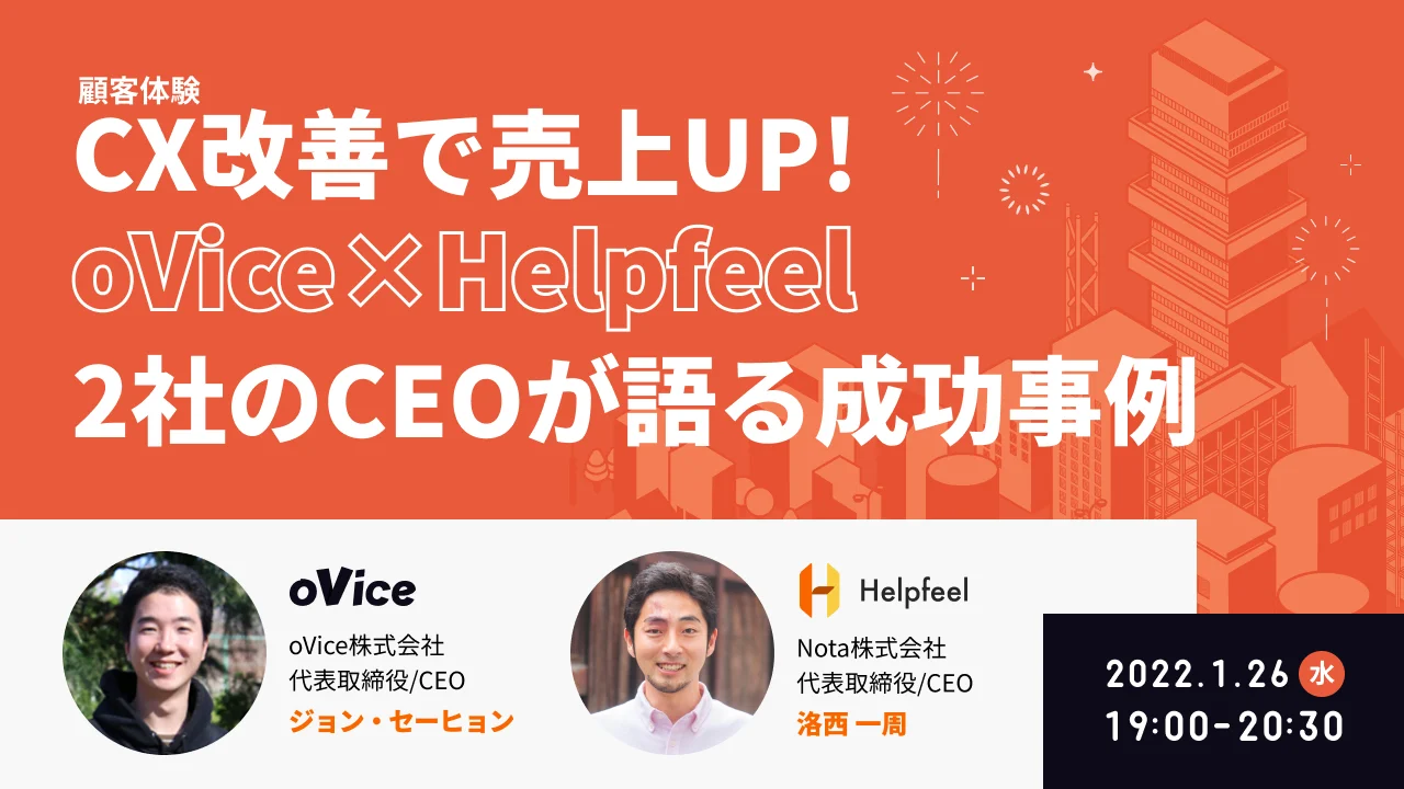 【ウェビナー】CX(顧客体験)改善で売上UP!oVice X Helpfeel 2社のCEOが語る成功事例