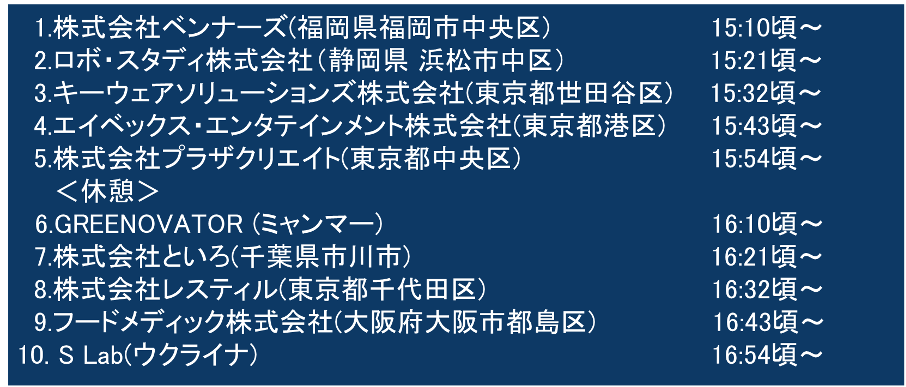 【発表企業とピッチ時間】