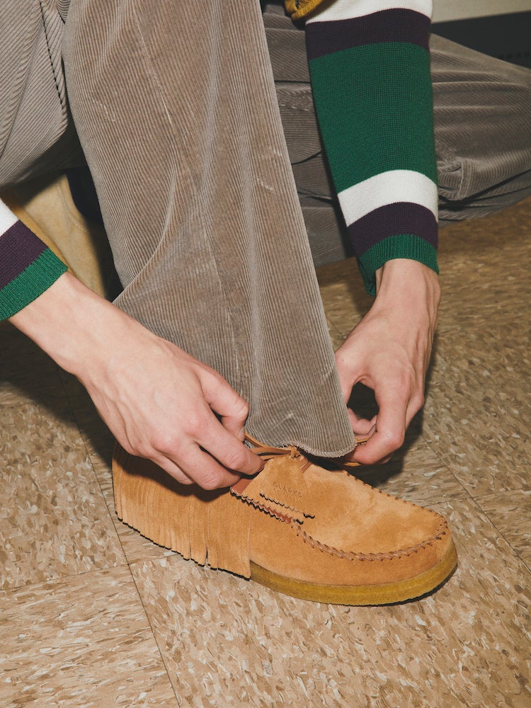 この度、1825年に創業した英国ブランド クラークスと岡 ゆみか氏が手掛けるファッションブランド INSCRIREが初コラボレーションモデルを発表。クラークスのアイコン的存在である Wallabee (ワラビー)ベースに、 サイドにあつらえたフリンジやアイコニックなステッチなどが特徴の一足。