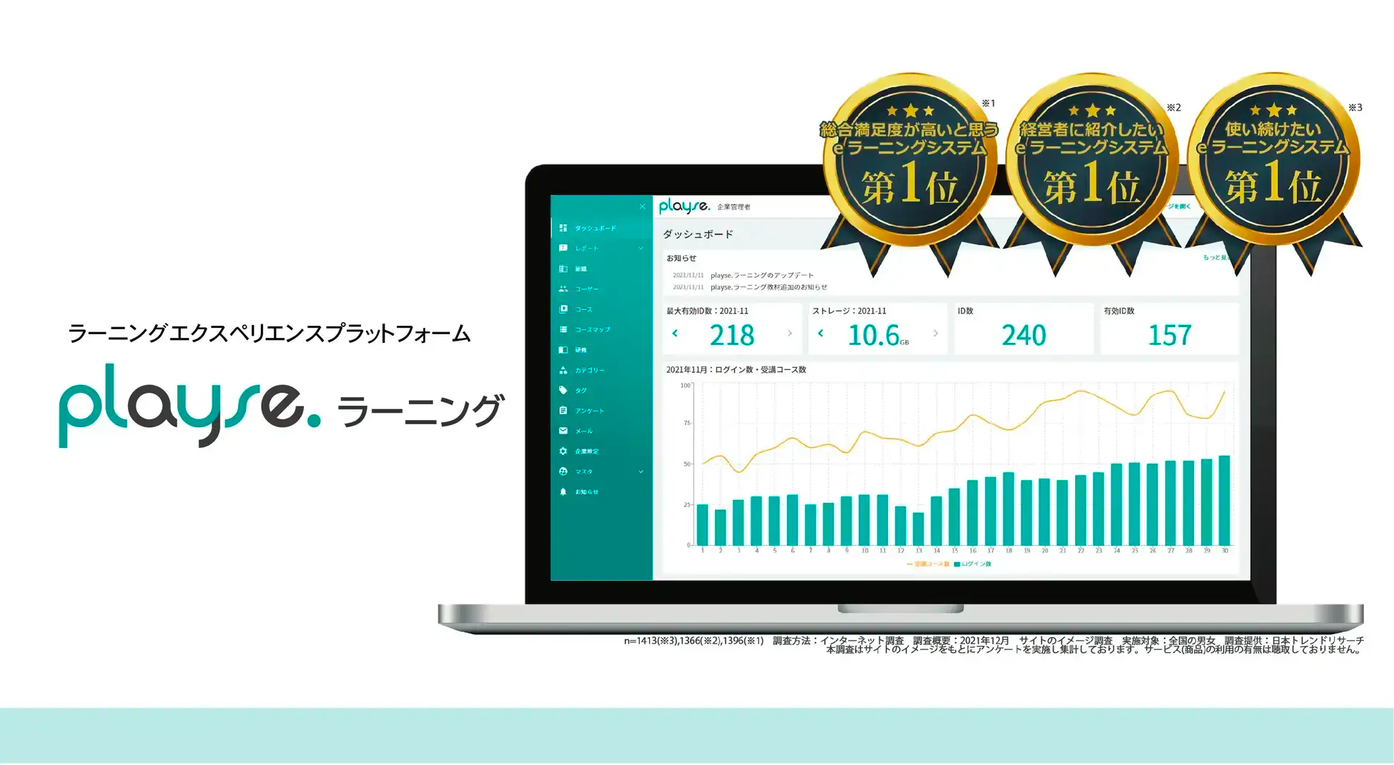 「playse.ラーニング」は、オンラインで社員教育ができるラーニングプラットフォームです。5,000以上のeラーニング教材と自社教材、オンライン集合研修を自由に組み合わせることで、新入社員や管理職に対しキャリアやスキルに合わせた段階的な教育を実施できます。学習ステップの見える化やテストなども実施できる多機能ツールです。詳しくはこちら:https://playse.jp/