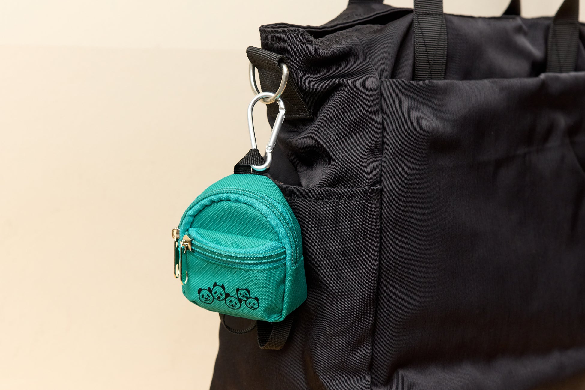 小さくて可愛いミニリュック型のキーホルダーが登場! 小さくても本格的な仕様で、ファスナー部分も実際に使用できます。ミニカラビナ付きなのでキーホルダーとしてバッグなどに付けたり、お手持ちの「おでかけシャンシャンマスコット」に着用させることも可能です。サイズ: 本体 65×70×25mm 素材:ポリエステル