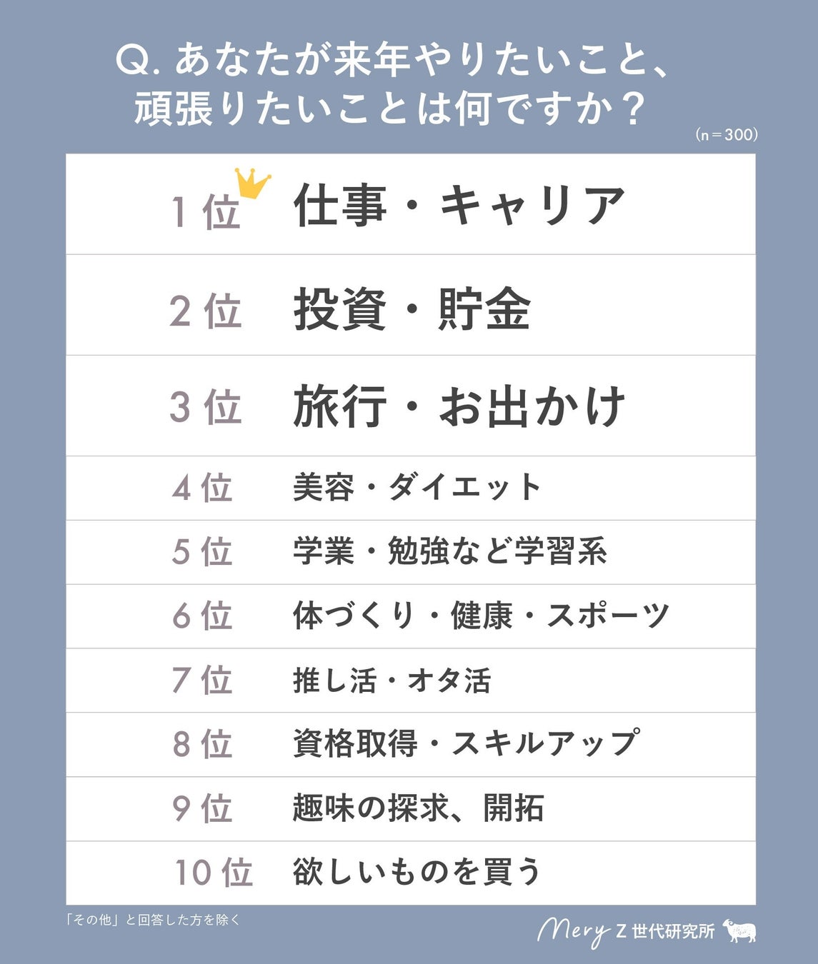 ■Z世代の2025年やりたいこと/頑張りたいことランキングの1位は「仕事・キャリア」。