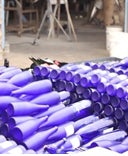 空瓶をリサイクルした「再生ガラス」を原料に生産。この「再生ガラス」を使った製法が琉球ガラスのはじまりとされています。「琉球ガラス」はその後、需要が増え、1975年の沖縄海洋博覧会をきっかけに観光土産品として広まり、1998年には沖縄県の伝統工芸品に認定*されました。
