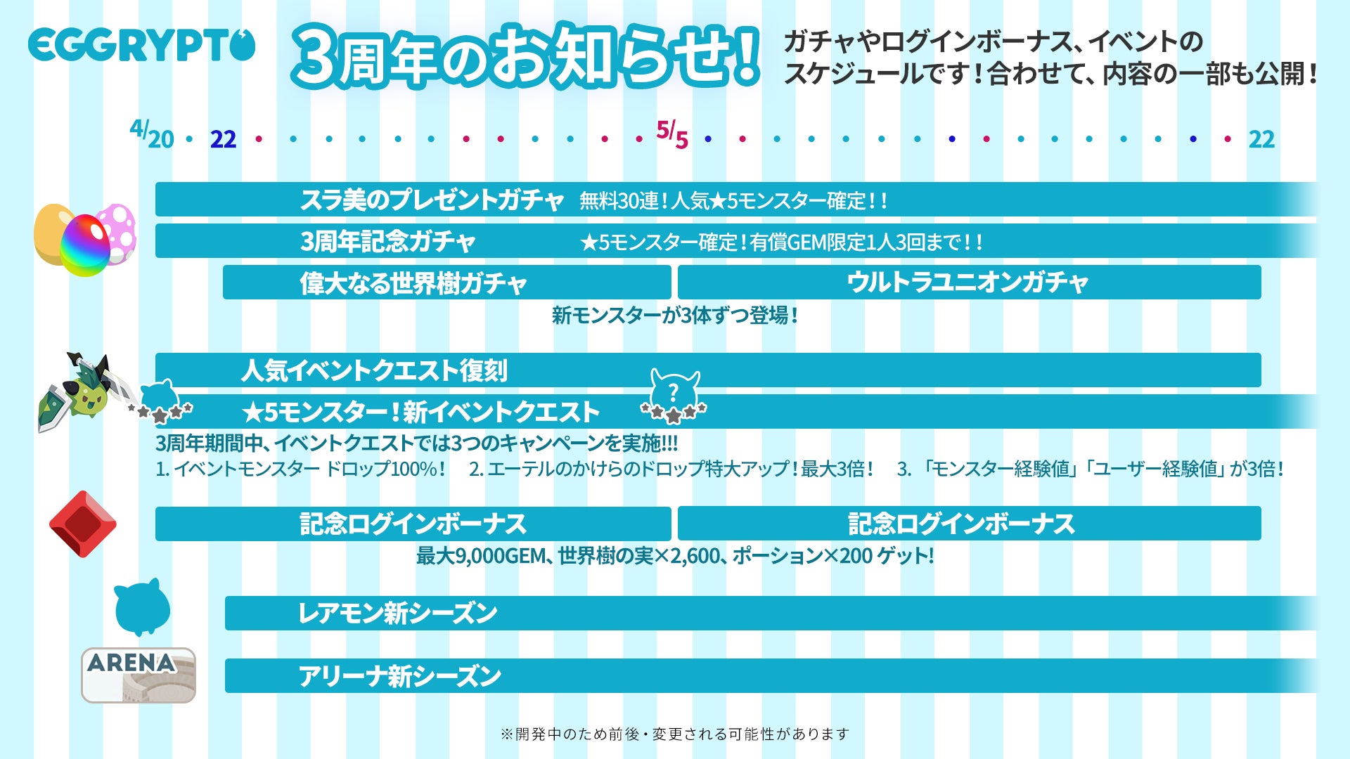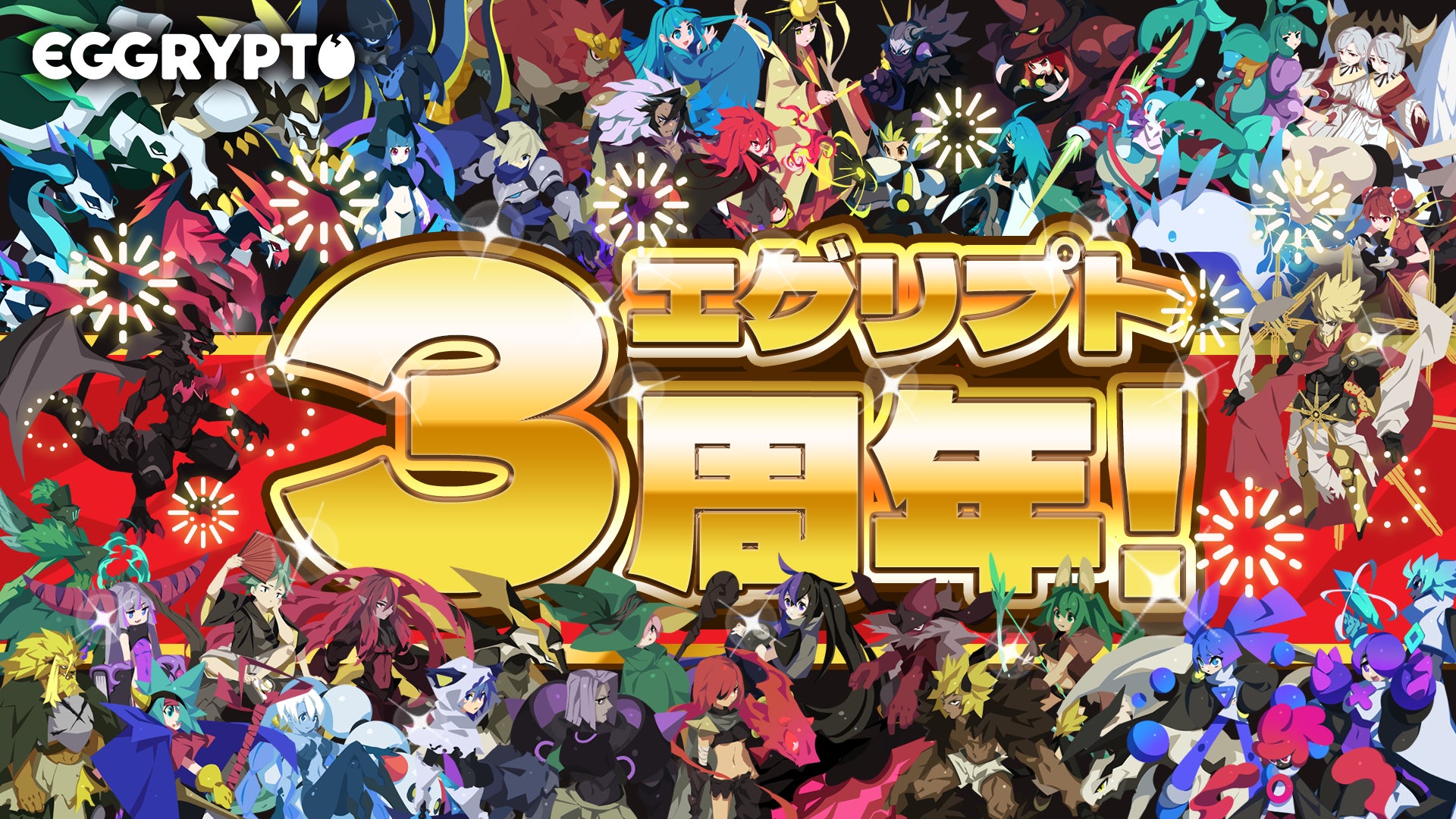 150万DLを突破したNFTゲーム「EGGRYPTO(エグリプト)」3周年!星5モンスター確定!無料10連ガチャが全3回など豪華キャンペーンを開催!